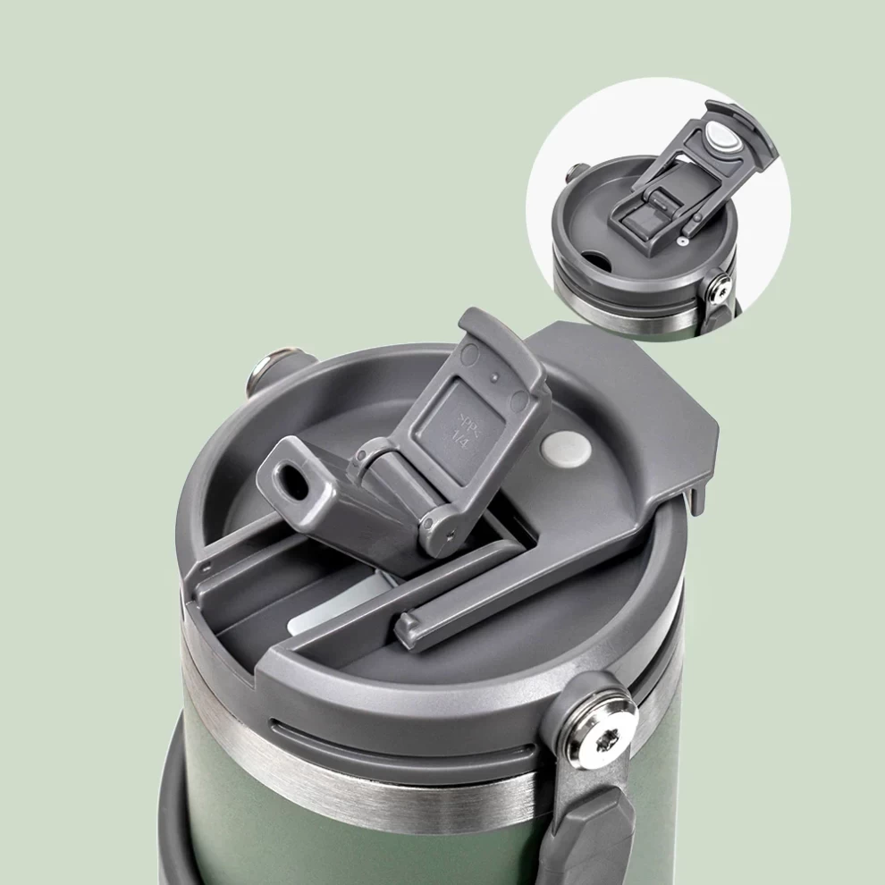مانع للتسرب وآمن: مع حلقة إغلاق عالية الجودة، يكون هذا الكوب مانعًا للتسرب، مما يضمن عدم وجود انسكابات أو تسرب جانبي، حتى تتمكن من حمله في حقيبتك براحة البال. مقبض مريح لسهولة الحمل: تم تصميم المقبض المحدث للحمل المريح، سواء كنت تمشي أو تركب الدراجة أو تسافر.