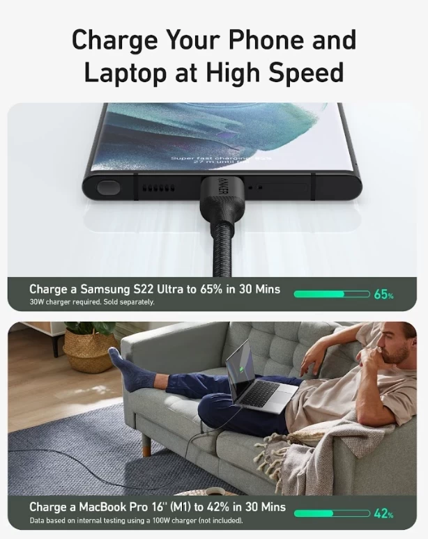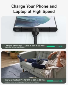 كابل يو اس بي – سي إلى يو اس بي – سي من أنكر، قوة 240 واط، بطول 0.9 متر، A80F5H11 – أسود