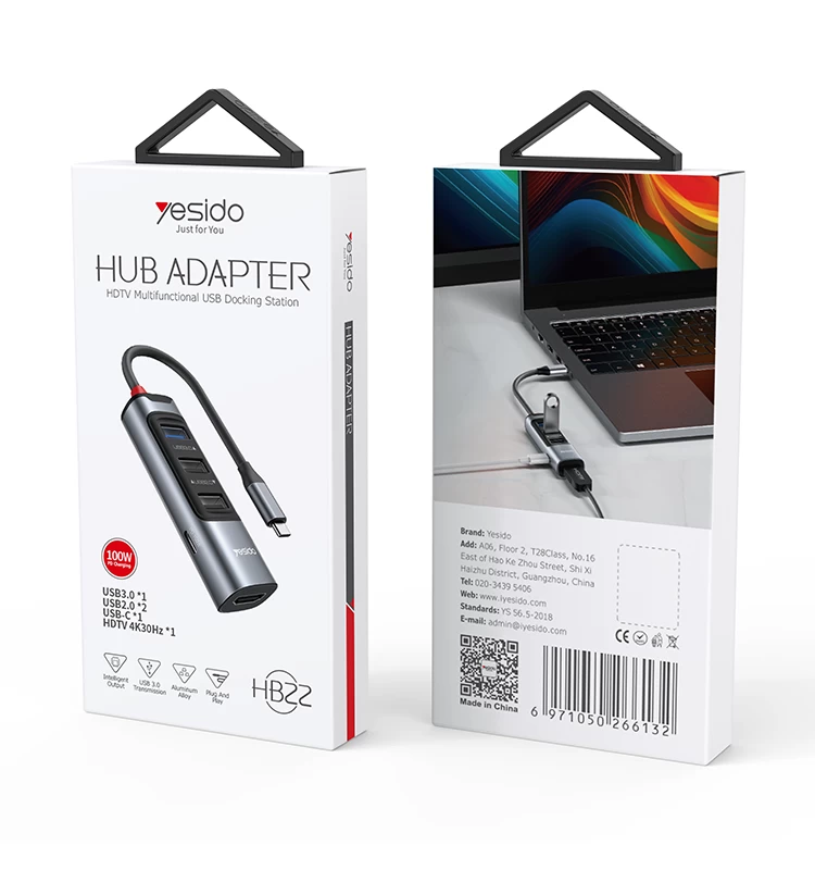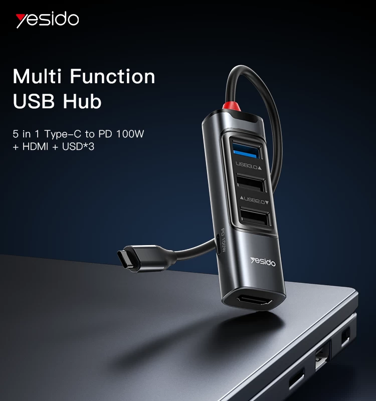 HB22 5 IN 1 USB C HUB | PD 100W For Laptop Tablet Mobile Phone Support