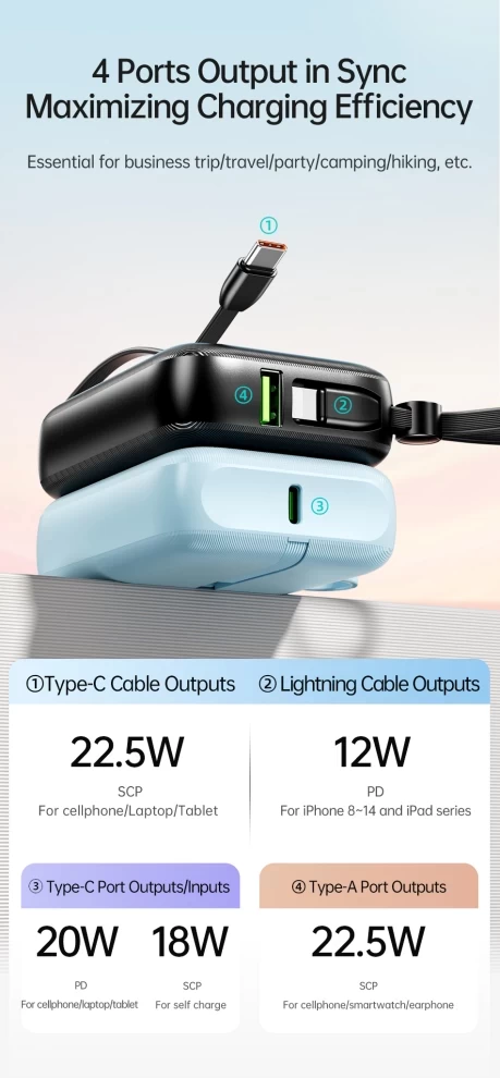 • USB-A output: 10V/2.25A 5V/3A 9V/2A 12V/1.5A