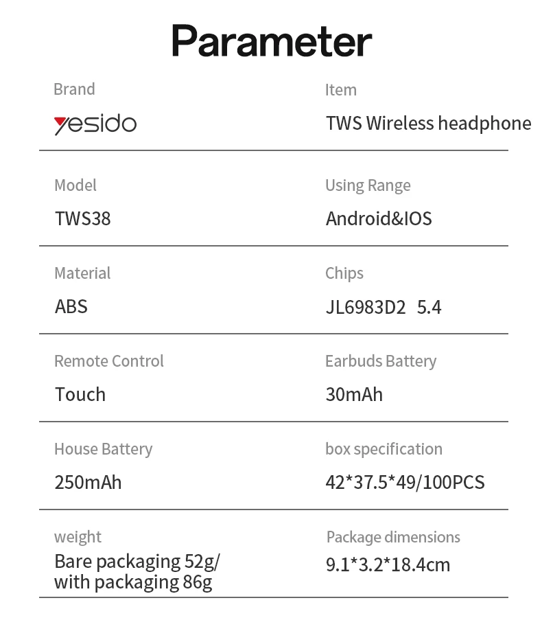 BT NAME: Yesido TWS38
