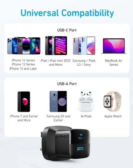 Anker 323 Charger, USB-C Port & USB-A Port, 33W, A2331K11 - Black